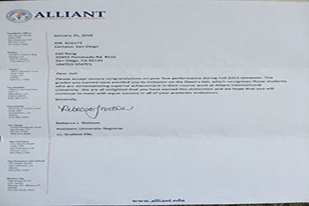 I enjoy the studying in America. The professors are very nice. They like me a lot and they have a very good impression on me. I am always brave to talk about my opinions and ask questions in class, which is what they like the best. Because of my outstanding study, I also got a complimentary letter from the university. My records of study were attached to the dean’s list, which I am very honored and please about.