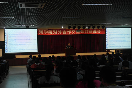11月20日,国际教育交流中心在学术报告大厅举办了对外合作交流项目宣讲会,来访嘉宾美国阿兰特国际大学驻中国办公室首席代表绳雪松主任主讲,宣讲会反响热烈,学院三百余名学生参与讲座。