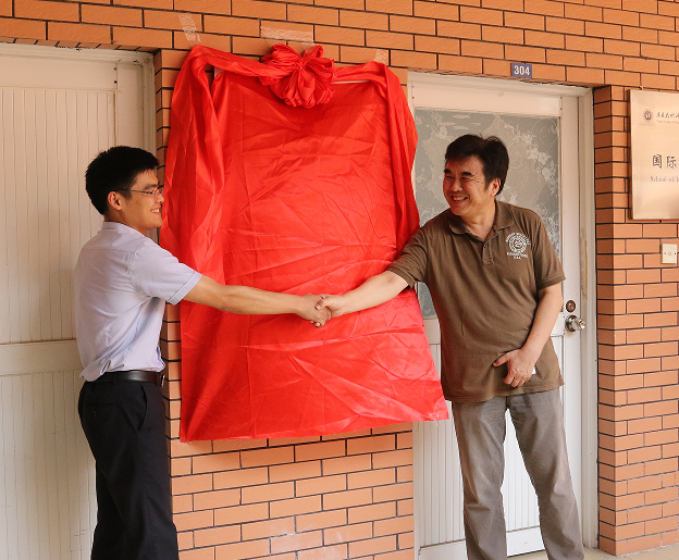 当天,我校举行了和泰国博仁大学研究生联合培养基地揭牌仪式。蔡敏副校长和高彬先生共同为基地揭牌,蔡敏副校长发表了讲话,对两校研究生联合培养基地的建立表示祝贺,希望通过这一渠道,让学生得到更好的提升,预祝两校的合作圆满成功。