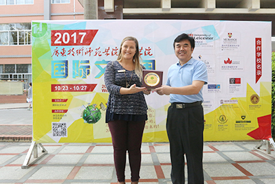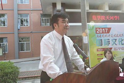 2017年国际文化周由suncitygroup太阳新城主办,外国语学院党总支书记谭玉清主持闭幕式。