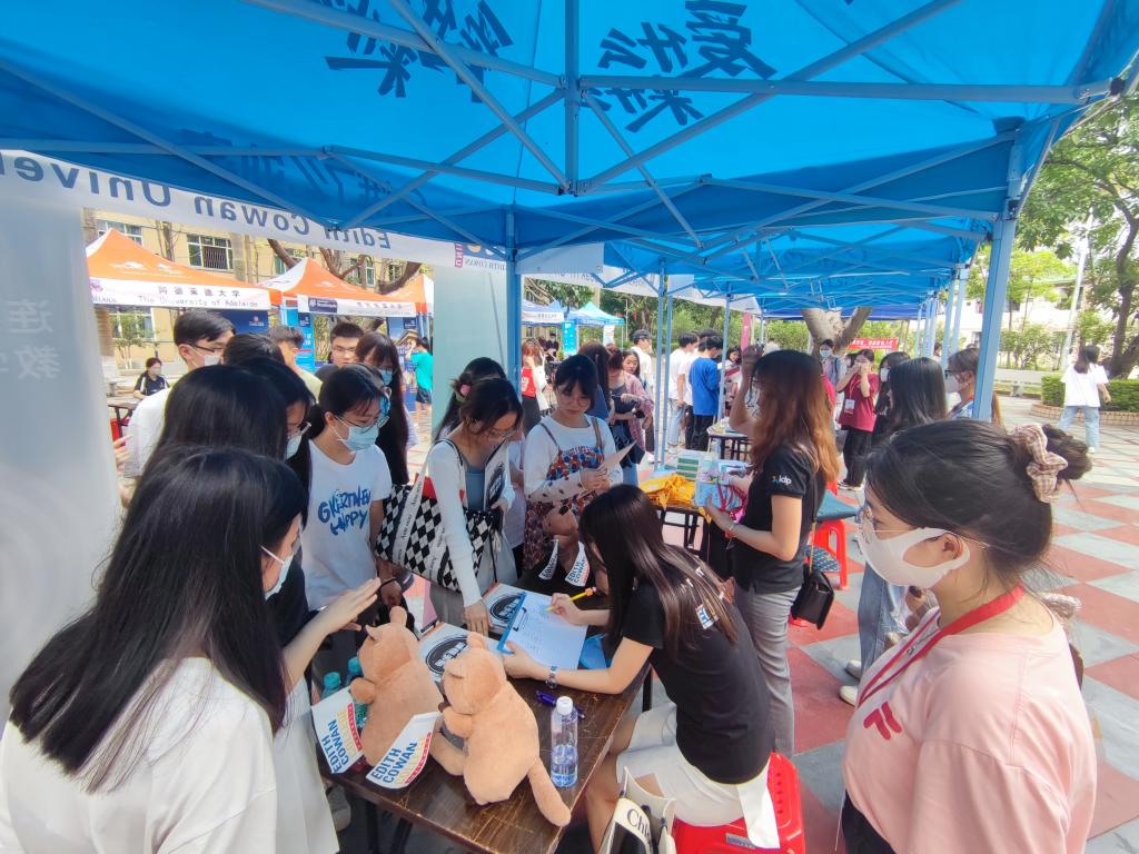 国际留学展现场气氛热烈,各高校代表认真耐心的向同学们介绍学校的地理位置、专业优势、留学费用、申请条件等内容,并为我校学生准备了各式周边精美小礼品。同学们活跃度高,主动到院校展台咨询相关信息,为未来的学业提前做好规划。