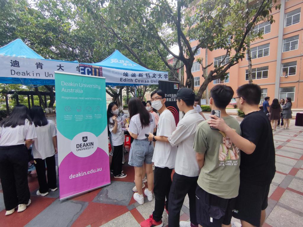 (黄菲青 郑丽娜)5月26日,suncitygroup太阳新城联合IDP教育咨询有限公司,在综合楼前庭院举办国际留学展。校长胡社军,党委副书记、副校长胡思虎,董事会办公室主任、社会服务部办公室主任魏东婷出席,澳大利亚阿德莱德大学、悉尼科技大学、西悉尼大学、迪肯大学、埃迪斯科文大学,英国莱斯特大学、思克莱德大学、斯特林大学、女王大学,新加坡科廷大学新加坡校区等参展学校代表,IDP教育咨询有限公司专业顾问等出席,有留学计划的师生200余人参加了开幕式。