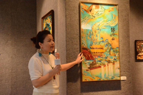 指导老师刘莉莉老师对此次展览做总结点评。她认为,一幅掐丝珐琅画是从绘稿、掐丝、调沙、点蓝等数道手工工序制作而成,经过特有的工艺,精心制作出各种风格的作品,每个线条都是作品的灵魂生命,承载着匠心精神。
