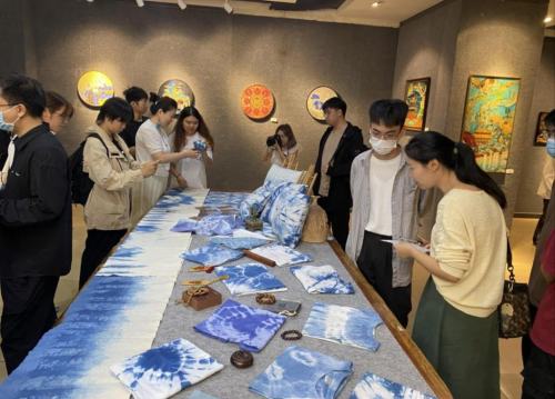 There were 30 Cloisonne and 20 tie-dye works made by students on exhibition. In order to enable students to deeply absorb the charm of traditional folk crafts and encourage more students to take on the responsibility of inheriting and innovating excellent traditional crafts, instructor Liu Lili combined the course “Comprehensive Materials” with Cloisonne enamel craft painting.