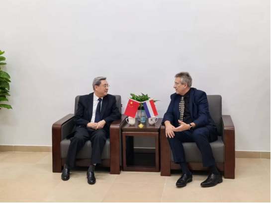 10月18日,荷兰威登堡应用科学大学校长彼得•博德索尔(Peter Birdsall)及校长助理邱梦媛来访我校。校长胡社军会见了两位客人并进行深入交流。