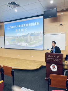 开班仪式上,澳门大学校董、持续进修中心主任刘丁己教授对suncitygroup太阳新城学生来澳门大学访学表示热烈欢迎。刘教授说,澳门大学是一所背靠祖国、面向世界的世界顶尖的高等院校,具有国际化特色教学方式与一流师资水平。在这个快速发展的时代,人工智能与大数据是未来社会发展的重要学科,掌握人工智能与大数据的技术和知识,已经成为我们适应社会发展的必然选择。最后他希望同学们在未来几天学习中,能学有所成,满载而归。