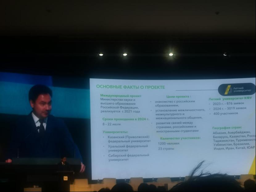 该项目由俄罗斯科学和高等教育部倡议组织,旨在促进各国人文和民间交流。该项目于2021年首次实施,喀山联邦大学于2023年加入该项目。今年,来自世界13个国家的数百名名学生参加了这次活动,包括阿布哈兹、阿塞拜疆、白俄罗斯共和国、南非、巴西、中国、印度、伊朗、哈萨克斯坦、塔吉克斯坦、土库曼斯坦、乌兹别克斯坦以及俄罗斯。在开幕式上,俄罗斯科学和高等教育部副部长康斯坦丁·莫吉列夫斯基(Konstantin Mogilevsky)致辞,他向该项目的参加者表示热烈的欢迎,并强调在这个多民族国家中,数百人聚集在一起交流和学习,能了解各个科学领域的知识,并获得与各国伙伴互动的经验,相信这个项目能使同学们进一步了解各个国家之间的联系。