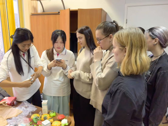 我校代表向俄罗斯学生介绍产品