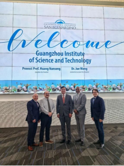 21日,黄南松一行访问加州州立大学圣贝纳迪诺分校,受到了教务长兼副校长拉菲克·默罕默德(Rafik Mohamed)、副教务长约翰·宾克里(John Binkley)、自然科学院副院长桂拉莫·埃斯卡兰特(Guillermo Escalante)、工学院副院长卡哈里·达加尼(Kahalil Dajani)、全球教育学院副院长伊斯德·李(Esther Lee)女士的热情接待。双方就“1+2+1”合作项目与招生事宜进行了深入讨论,一致同意将计算机工程领域作为双方合作的理想起点。黄南松介绍了我校人工智能学院及未来发展规划,期待与加州州立大学圣贝纳迪诺分校在相关领域开展更多实质性的合作。双方就优势专业及合作意向进行了广泛交流,并探讨了未来在多个领域的合作可能性。加州州立大学圣贝纳迪诺分校对我校机器人技术专业表示浓厚兴趣,双方还就学分机制及合作教学方式等议题进行了深入讨论。