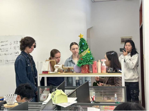 吴霜老师向俄罗斯交换生介绍国贸工作室业务