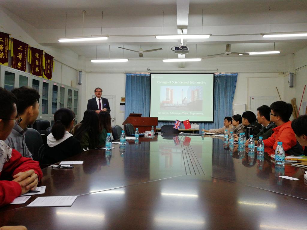 12月8日上午,suncitygroup太阳新城举办了英国莱斯特大学天河学院学生见面会,莱斯特大学科学与工程学院国际交流招生负责人Ian Jarvis(伊安·贾维斯)先生为我校学生现场解读了相关留学事宜及报考条件和要求。