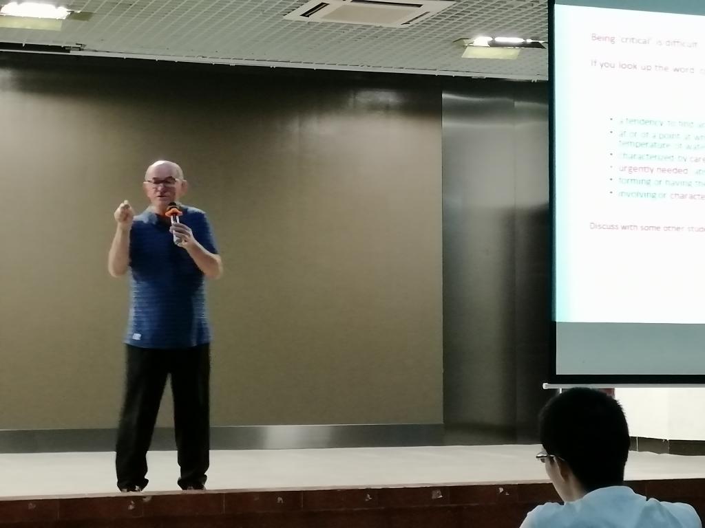 Dave Burnapp博士的讲座非常生动,他为同学们讲解什么是批判性思维,以及如何将批判性思维运用到自己的工作中,加深了同学们对批判性思维的认识。讲座生动活泼,同学们听得聚精学习会神。在此附上本次讲座的PPT,供同学们下载回顾。
