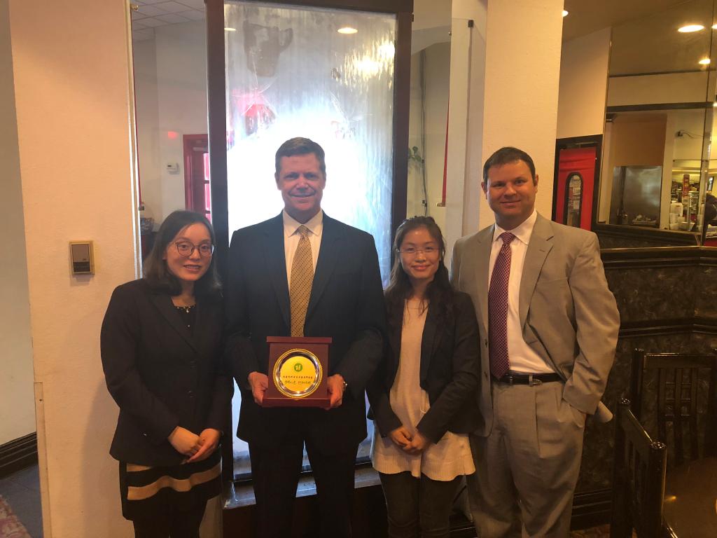 美国时间4月4日,我校管理学院院长助理魏东婷、suncitygroup太阳新城办公室主任莫云云代表天河学院,访问了中西州立大学,并在国际学生处会议室与该校外事办公室主任兰迪·格林博士(Randy Glean)等代表进行了座谈。副校长Keith Lamb及校长助理Matthew Park宴请了代表团。
